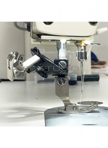 Watch free tutorial on using this - https://www.savisfashionstudio.com/turret-attachment-for-industrial-sewing-machine
